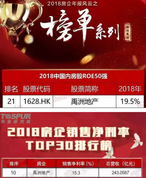 禹洲地產(chǎn)以19.5%的凈資產(chǎn)收益率(ROE)于樂居財(cái)經(jīng)2018年報(bào)風(fēng)云之榜單系列中,位列《2018中國地產(chǎn)內(nèi)房股ROE50強(qiáng)》第21名,排名環(huán)比2018上半年提升5名。同時(shí),同策研究院4月發(fā)布《2018房企銷售凈利率TOP30》榜單,禹洲地產(chǎn)以15.3%的銷售凈利率躋身10強(qiáng),其“三駕馬車”穩(wěn)健發(fā)展的經(jīng)營理念和強(qiáng)勁盈利能力獲得行業(yè)廣泛認(rèn)可。