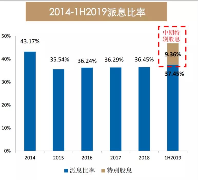 在2019年上市10周年之際,禹洲派發(fā)中期股息每股12港仙,并加派上市十周年特別股息每股3港仙,合計派息同比增長62.1%,派息率高達46.81%。而上市10年來,禹洲每股已累計派息2.62港元,相當于IPO價格2.7港元的97%。這意味著在2009年禹洲上市時投資禹洲股票,到2019年時股票所獲得的分紅已近覆蓋本金。