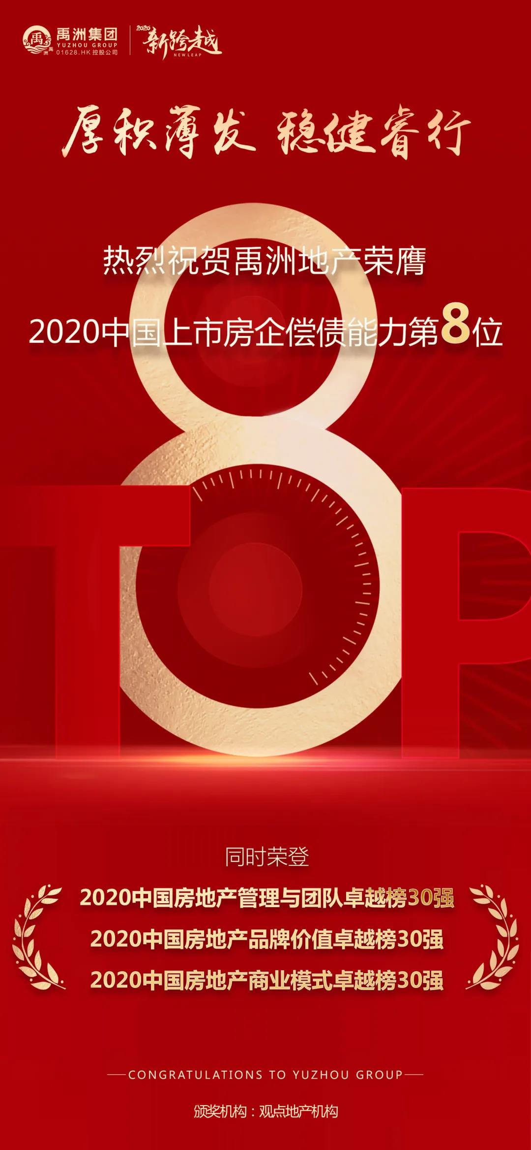 在超額完成業(yè)績的同時,禹洲的財務穩(wěn)健性也在行業(yè)居于前列。此次評選中,禹洲地產(chǎn)與中海、金地等房企一同躋身“2020中國上市房企償債能力TOP10”,禹洲更是高居行業(yè)第8位,這也說明禹洲“三駕馬車”穩(wěn)健發(fā)展模式備獲認可。