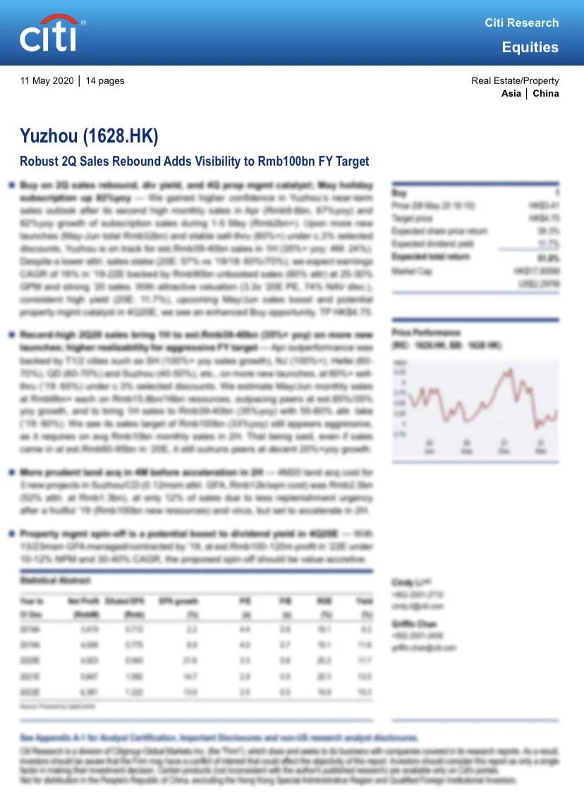 花旗 | 禹洲地產(chǎn)(01628.HK):第二季度銷售增長勢頭強勁,重申“買入”評級,目標價4.75港元