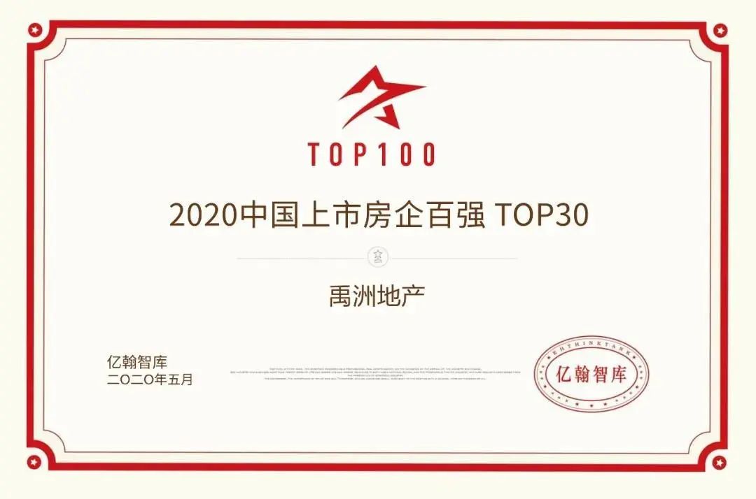5月,在由中國(guó)指數(shù)研究院主辦的“2020中國(guó)房地產(chǎn)上市公司研究成果發(fā)布會(huì)”上,禹洲集團(tuán)以優(yōu)異表現(xiàn)榮膺“2020中國(guó)大陸在港上市房地產(chǎn)公司財(cái)富創(chuàng)造能力TOP10”第9名。同月,在億翰智庫(kù)主辦的“2020年中國(guó)上市房企百?gòu)?qiáng)發(fā)布會(huì)”中,禹洲斬獲“2020中國(guó)上市房企百?gòu)?qiáng)TOP30”第30名、“2020中國(guó)上市房企投資價(jià)值十強(qiáng)”第8名。