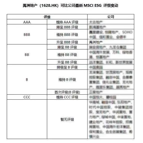 今年7月,禹洲發(fā)布2019年ESG報(bào)告,9月,MSCI公司發(fā)布了ESG評級報(bào)告,禹洲地產(chǎn)(01628.HK)ESG評級被定為BBB級,在境內(nèi)所有房企中排名第一。MSCI公司是美國著名指數(shù)編制公司,MSCI指數(shù)的研究成果具有客觀性、公正性、實(shí)用性、參考性以及公開性等特點(diǎn),其評級結(jié)果是投資人進(jìn)行股權(quán)投資的重要參考依據(jù)。