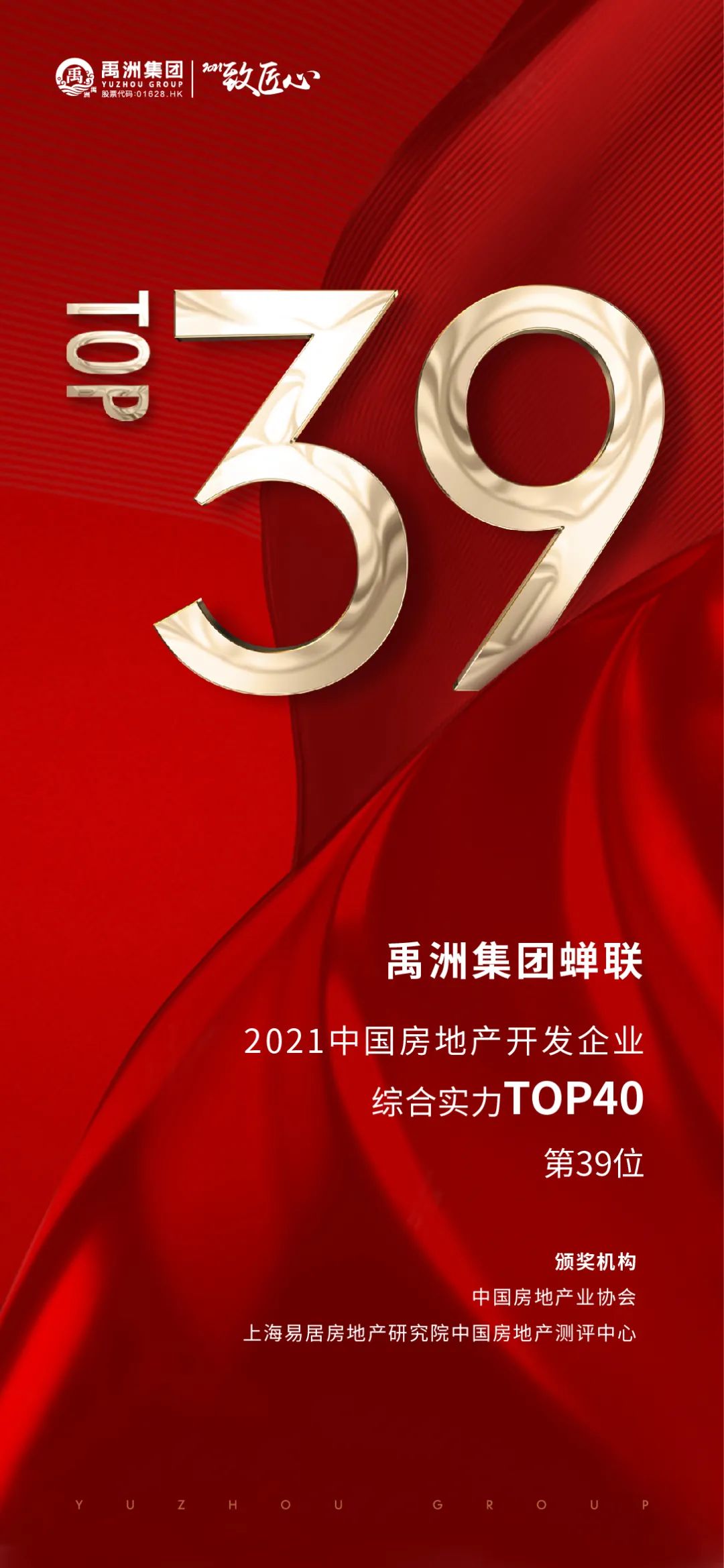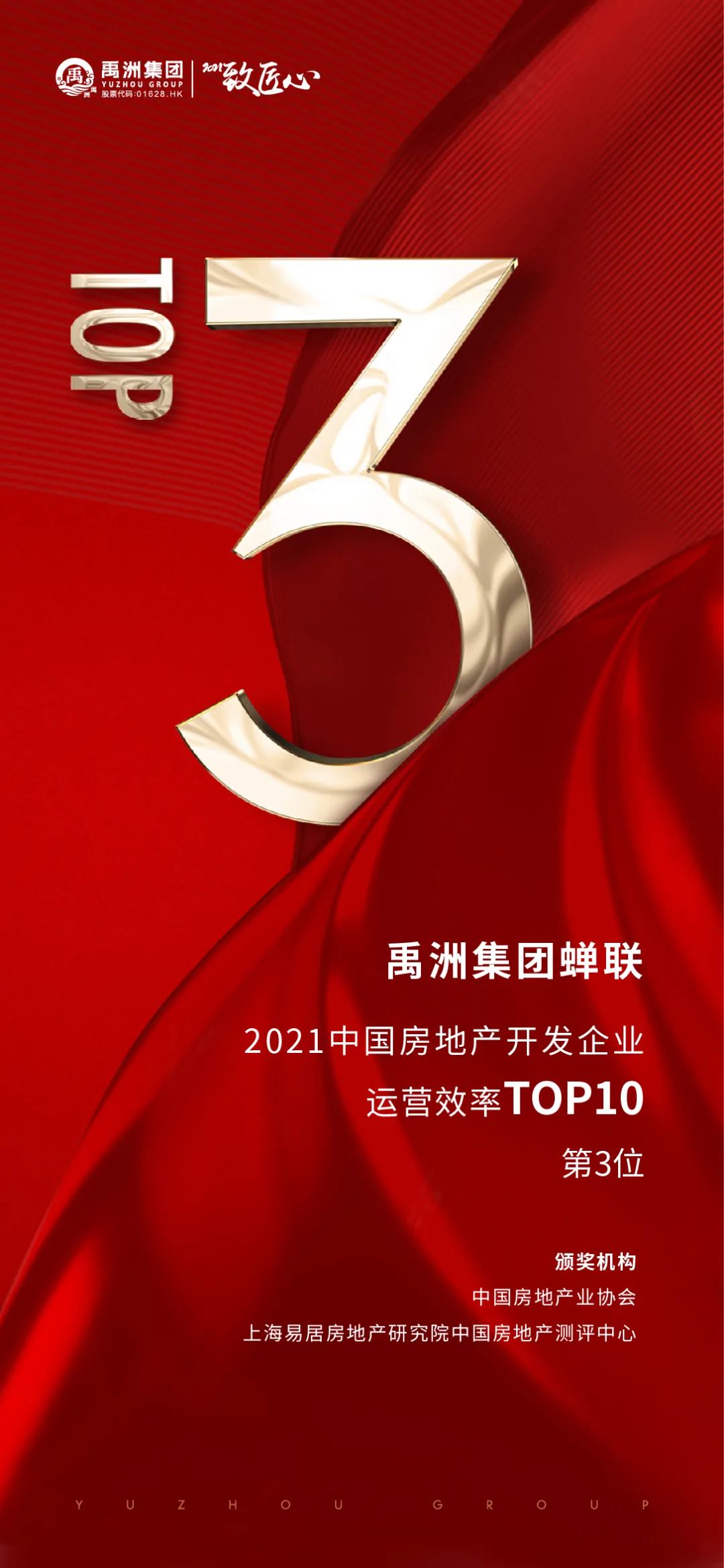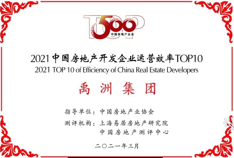 此次榮獲“2021中國(guó)房地產(chǎn)開(kāi)發(fā)企業(yè)40強(qiáng)”第39名、“2021中國(guó)房地產(chǎn)開(kāi)發(fā)企業(yè)運(yùn)營(yíng)效率10強(qiáng)”第3名,連續(xù)11年榮登百?gòu)?qiáng)、連續(xù)8年蟬聯(lián)TOP40,印證了禹洲集團(tuán)前瞻的戰(zhàn)略布局和穩(wěn)健的發(fā)展步伐,得益于全體禹洲人的并肩作戰(zhàn)、奮力拼搏。
