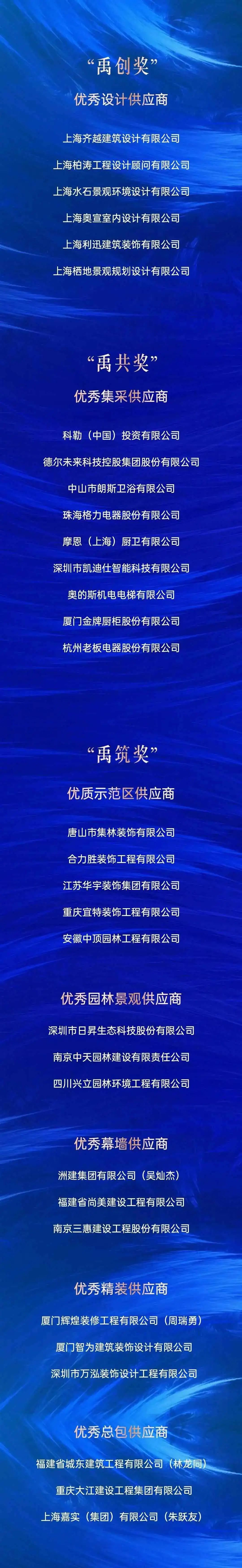 同時,為感謝供應(yīng)商在合作過程中的杰出表現(xiàn),禹洲今年首度設(shè)立屬于供方伙伴的“禹創(chuàng)、禹共、禹筑”三大獎項,并通過嚴格的標準進行全面考核,評選出了優(yōu)秀供方單位并在峰會現(xiàn)場隆重表彰。