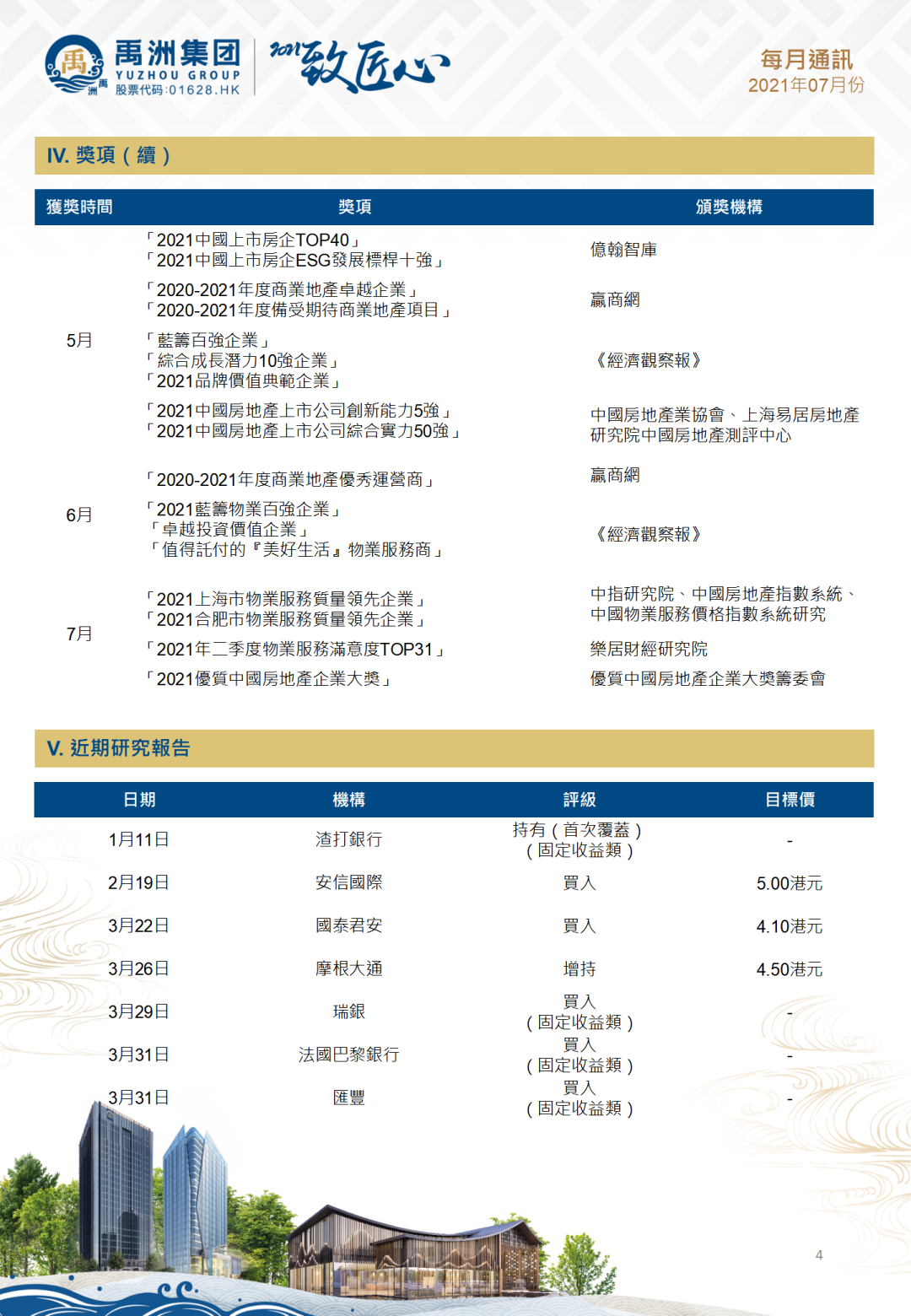 憑借“區(qū)域深耕,全國領(lǐng)先”發(fā)展戰(zhàn)略有效落實(shí)及極具匠心精神的產(chǎn)品力,禹洲集團(tuán)連續(xù)獲得多個獎項(xiàng),旗下各版塊業(yè)務(wù)也頻頻獲得行業(yè)點(diǎn)贊和認(rèn)可。