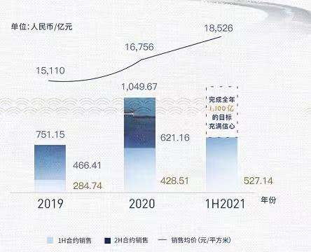 累計實現(xiàn)合約銷售額約為人民幣527.14億元,同比增長23.02%;合約銷售面積為284.53萬平方米,合約銷售均價高達(dá)人民幣18,526元/平方米。
