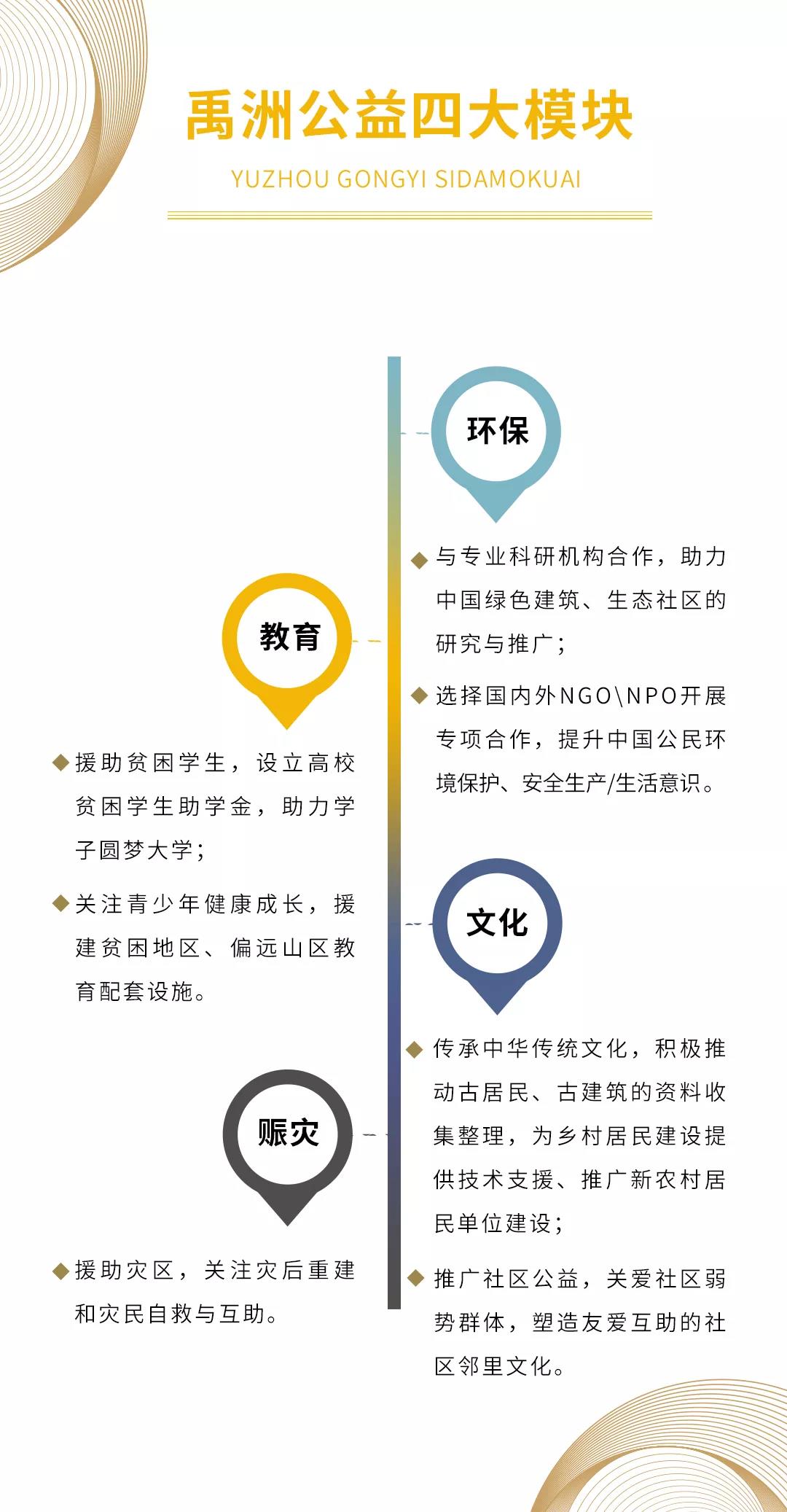 2014年,禹洲集團(tuán)正式注冊成立禹洲公益基金會。截至目前,禹洲對外捐贈總額累計(jì)已超過3億元,并逐漸形成教育、文化、環(huán)保、賑災(zāi)四大公益模塊。