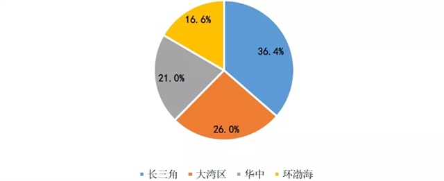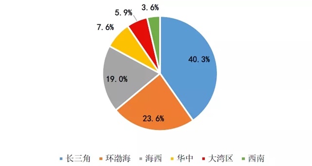 圖:2019年上半年禹洲地產(chǎn)六大區(qū)域土地儲備面積占比情況