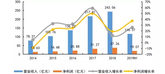 圖:2014-2019年上半年禹洲營業(yè)收入和凈利潤情況