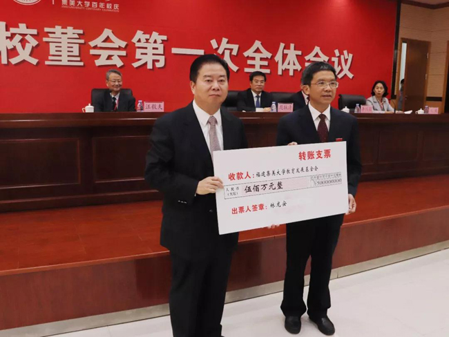 禹洲集團(tuán)董事局主席林龍安代表禹洲向集美大學(xué)捐贈人民幣500萬元