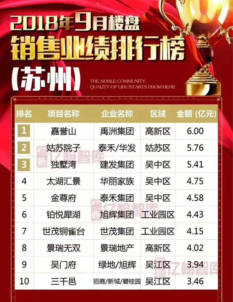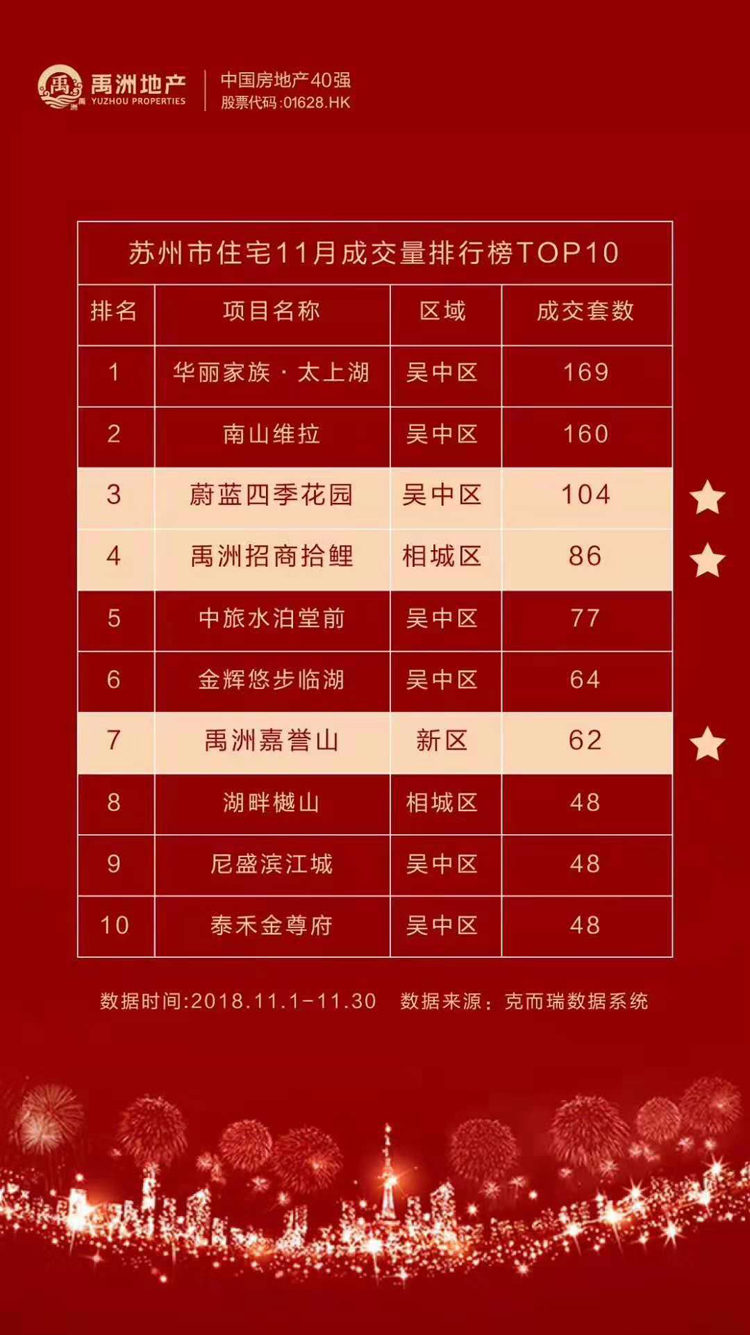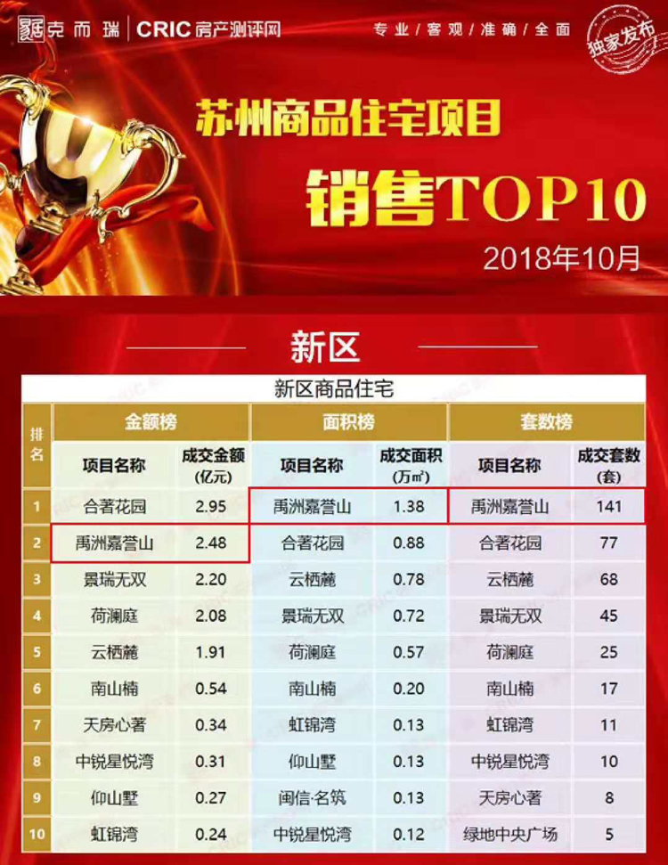 根據(jù)克而瑞最新出爐的11月蘇州商品住宅銷售排行,禹洲三盤躋身榜單TOP10,引爆蘇州新房市場(chǎng)。事實(shí)上,本次“霸榜”并不是首例,在此之前就有跡可循。