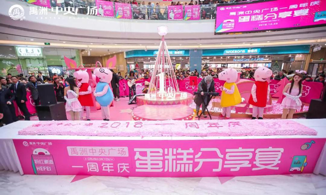 既然是慶祝生日,蛋糕當(dāng)然是必不可少的東西!禹洲特地準(zhǔn)備了巨型千人粉紅蛋糕,與顧客們一起開懷品嘗,共享歡樂時光!