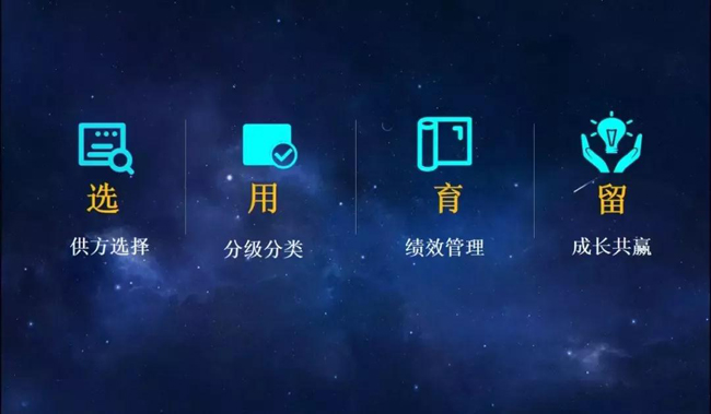 禹洲將堅守陽光廉潔、公平競爭、成長共贏的核心理念,通過供方選擇、分級分類、績效管理、成長共贏4大階段,建立“選、用、育、留”的管理模式,構(gòu)建良性、健康的供方發(fā)展生態(tài)。