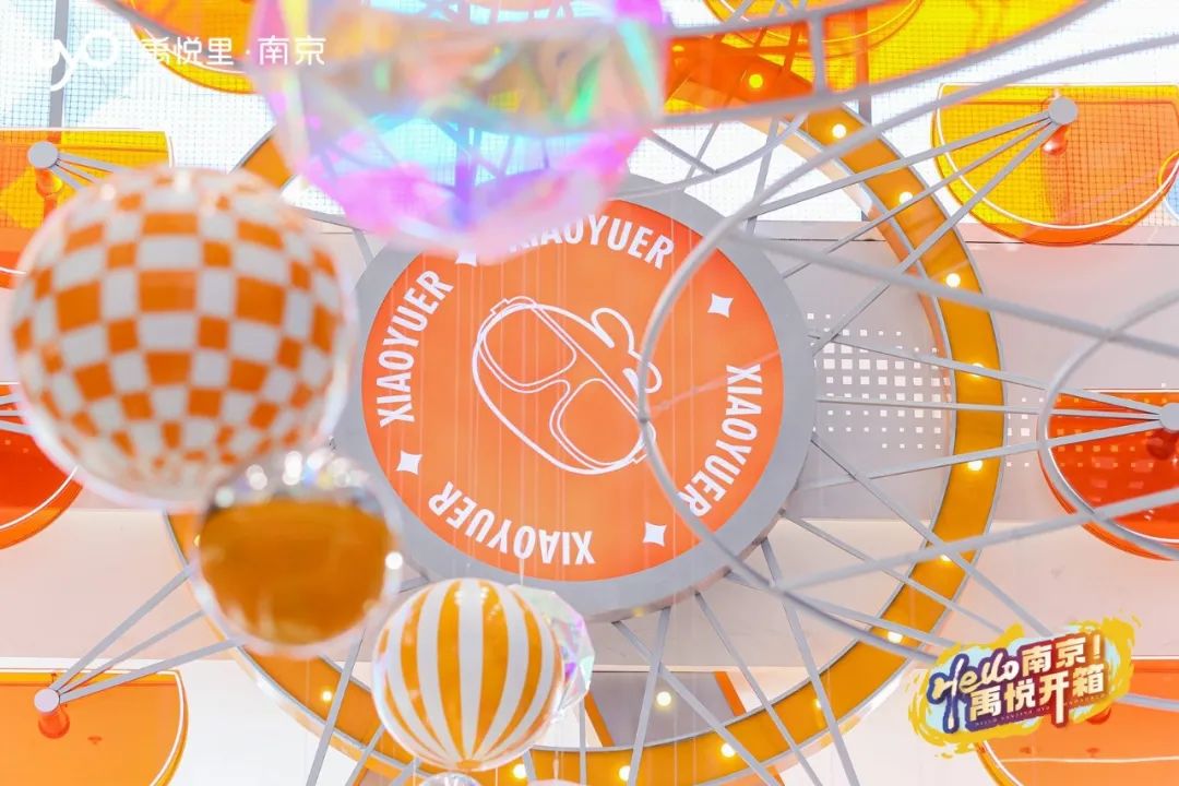 南京禹悅里開業(yè)沿用禮品盒的概念,以“hello南京 禹悅開箱”為主題,將驚喜層層揭秘。來到主入口,大型氣模IP小禹兒躍入眼簾,坐在摩天輪前遠(yuǎn)眺鐵心橋的車水馬龍。夜間光影流動,摩天輪緩緩轉(zhuǎn)動,閃爍的霓虹點亮街頭,讓這片成熟的社區(qū)再次煥發(fā)出摩登與活力。