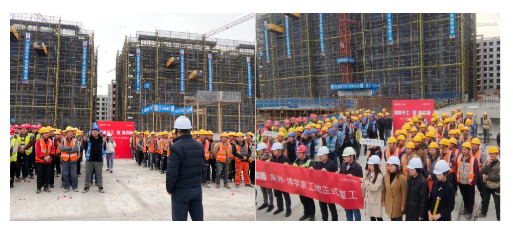 重慶禹洲·博學家工程管理團隊自年初六起,正式進駐工地,為推進全面復工復產(chǎn)組織各項前期工作。正月十八日,項目迎來全面復工。同日,重慶禹洲·雍錦府、重慶禹洲府也全面復工。